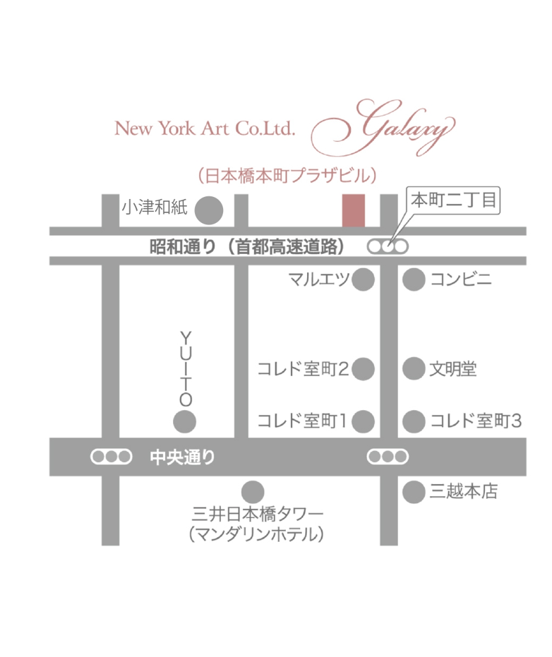 Designers space デザイナーズスペース Art Quickのワークショップは、日本橋の「New York Art Galaxy」で開講しております。 「New York Art Galaxy」は、ワークショップ・セミナーの開催のほか、展示会、イベント、セミナー会場、スタジオなど、レンタルスペースとしても使用できます。 ご見学も随時受付ておりますのでお気軽にご連絡ください。 詳細は下記をご覧ください。 お問い合わせ webmaster@artquick.jp 株式会社New York Art/TEL: 03-3663-7700 FAX: 03-3663-7703 ※電話でのご質問等はお気軽に弊社営業時間内(月〜金、10:00〜17:00)にてお願い致します。 各線「三越前」より徒歩約5分。 三越本店の交差点を昭和通りに向って(コレド室町方向)、 本町二丁目交差点を渡ったところにあるビルです。 [所在地] 〒103-0023 東京都中央区日本橋本町2-6-1 日本橋本町プラザビルB1F レンタルスペースのご案内 Rental space 三越前駅・新日本橋駅・小伝馬町駅の3駅から徒歩約6分。三越前駅には三越本店やコレド室町があり、老舗や和モダンの素敵な街並みが続きます。昭和通りに向かって歩き交差点を渡っていただくと、大理石のエントランスのビル地下1Fに「New York Art Galaxy」があります。これまでに展示会やワークショップ、セミナー会場、スタジオ、スクールとしてのご利用実績があります。内壁全体が白で統一され、ギャラリーとしてのアート感覚あふれるスペースです。 YouTubeの収録や配信用のスタジオにも最適です! 魅力的なスペースでYouTubeの収録や動画配信をしてみませんか? GalaxyはArtQuickでのYouTube・Zoom配信の実績のある配信スタジオでもあります。使用料金はリーズナブルな「スペースとインターネット回線」のみのレンタルから、さまざまなオプションも選べます。お問い合わせは下記まで。 【利用可能時間】 10:00~17:00 【主な設備】 広さ 52㎡(メイン:45㎡、エントランス7㎡) 【無料機材】 ・長テーブル ・椅子 【有料機材】 ・マイク2本 ・スピーカー ・プロジェクター 展示会イメージ 展示会イメージ 利用者の声 利用手順 お問い合わせ 電話・メール・FAX等でお問い合わせください。 ご希望の日程、ご利用時間、ご利用内容をお聞かせください。 見学のみで受付しております。(お見積り後でも可) 空き状況の確認・見積提出 ご希望のお部屋の空きを確認できましたら仮予約とさせていただきます。 内容に合わせて見積をご提出させていただきます。 請求書の発行 お申し込み後、請求書を発行させていただきます。 使用前にお支払いいただきますようお願いします。 事前お打ち合わせ ご利用日1週間前までにご希望レイアウトのご連絡をさせていただきます。 当日のご利用 ご利用開始時間の5分前に事務所へお越しください。 施設利用について説明させていただいた後に開錠いたします。 お問い合わせ Contact