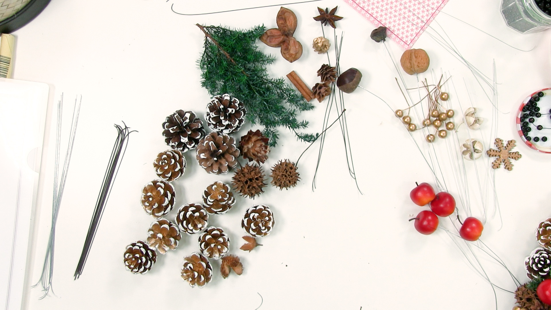 木の実を使ったモダンリースとスタイリッシュなアレンジ